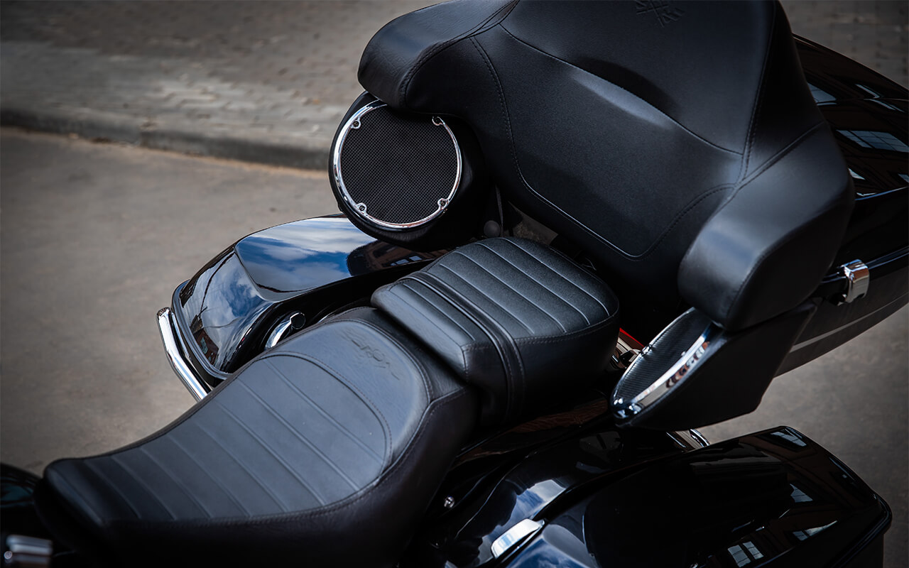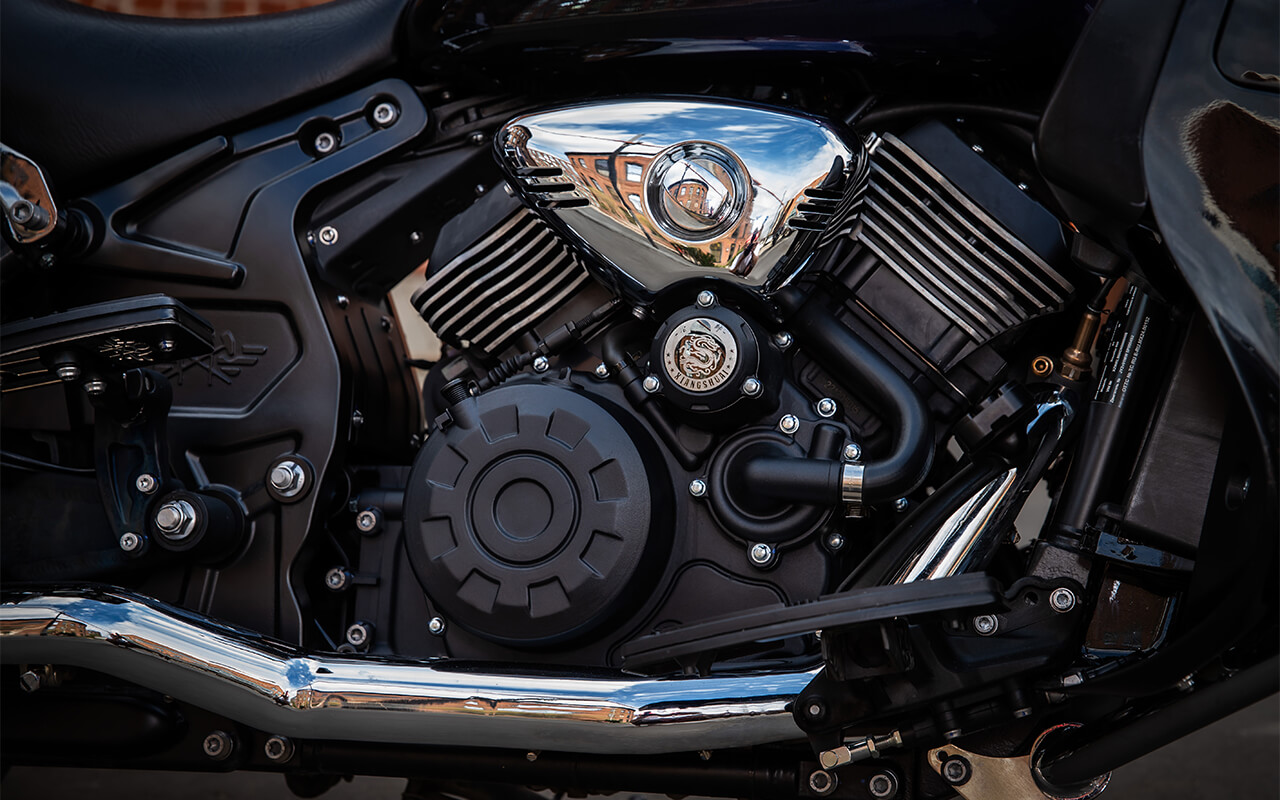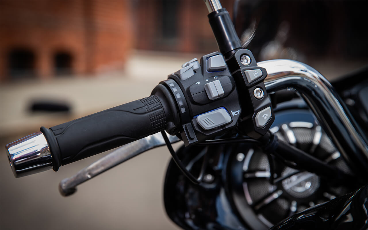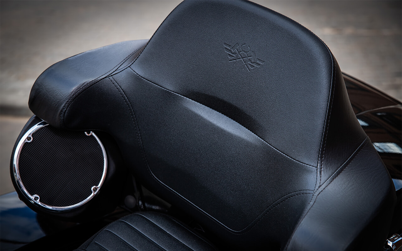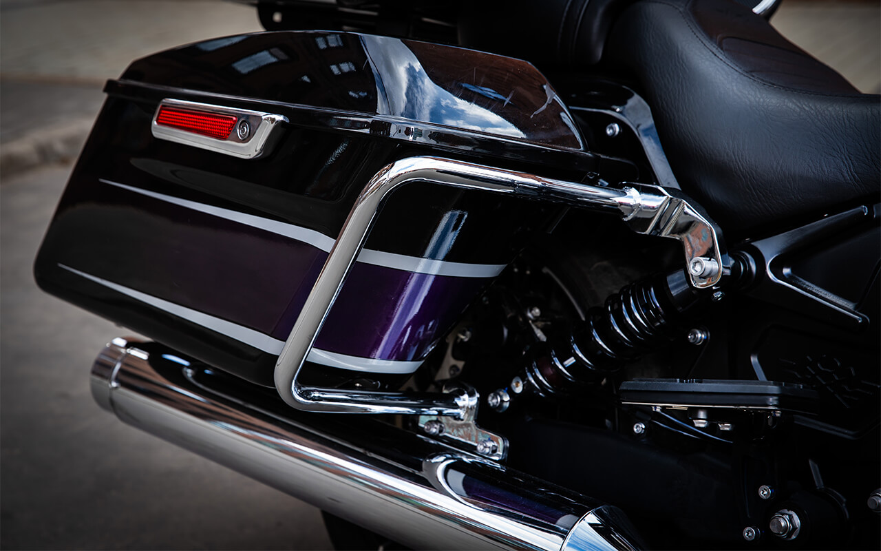 Сочетание матовых и глянцевых покрытий с хромированными элементами подчёркивает строгий и неудержимый характер модели, а массивные выхлопные трубы выражают динамический потенциал мотора.
